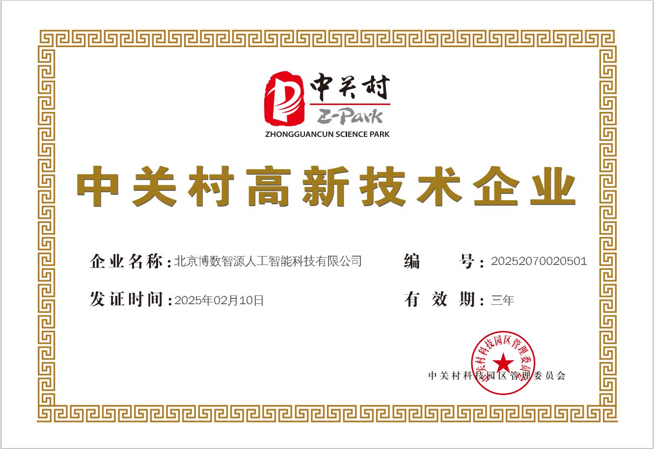獲得中關(guān)村高新技術(shù)企業(yè)